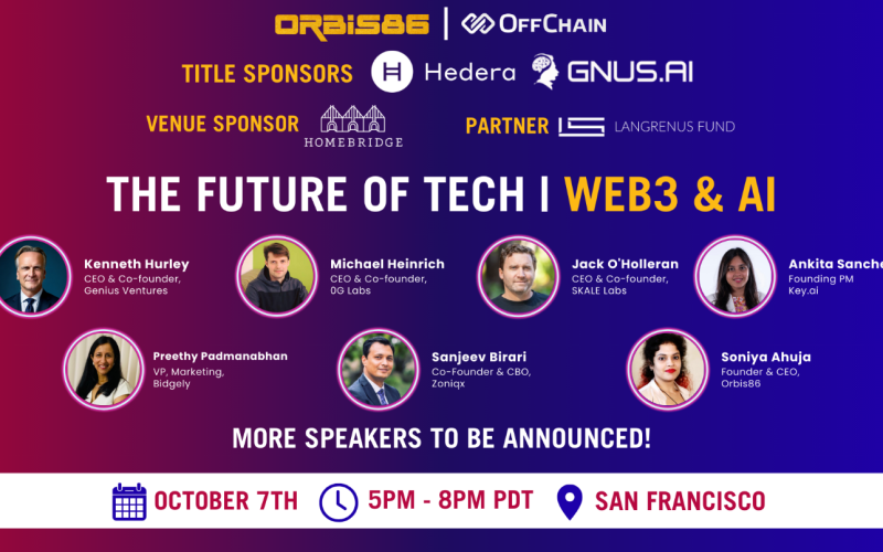 Get ready to plug into the future! On October 7th, 2024, San Francisco will be the epicenter of digital innovation as Orbis86 hosts the highly anticipated event, “The Future of Tech – Web3 x AI.” Title Sponsored by Hedera and GNUS.AI, Venue Sponsored by Homebridge and co-hosted by OffChain, this electrifying event will bring together some of the brightest minds in the tech world, with industry leaders and pioneers stepping onto the stage to explore the game-changing possibilities of Web3, AI, and blockchain. Mark your calendars and gear up for an evening filled with bold ideas, groundbreaking insights, and a chance to network with the who’s-who of the tech ecosystem.